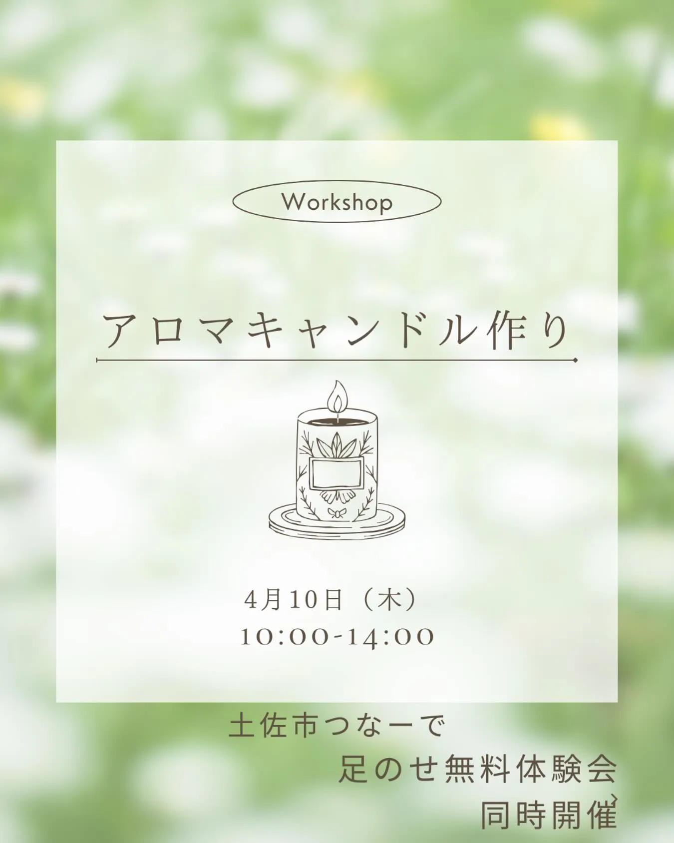4月10日に土佐市のつなーでで ミツロウのアロマキャンドルのワークショップを 開催します。(材料費のみ) あったか足のせ体験会も同時開催します🥰